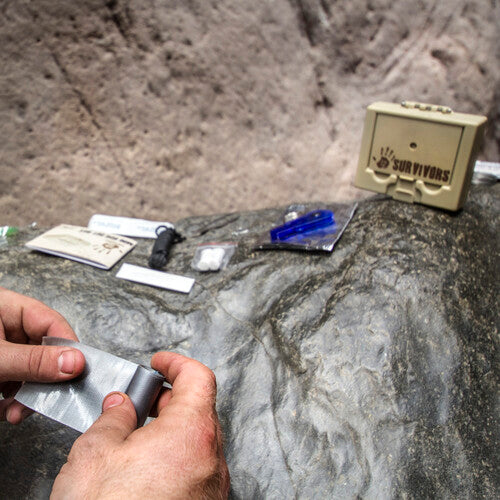 The 12 Survivors Mini Bug Out Box will be one of the smallest pieces of gear in your pack—and maybe the most important. This 4 x 3.7 x 1.2" waterproof ABS case is packed with more than 40 survival tools for making a fire, catching fish, performing first aid, rigging up shelter, and signaling for help.